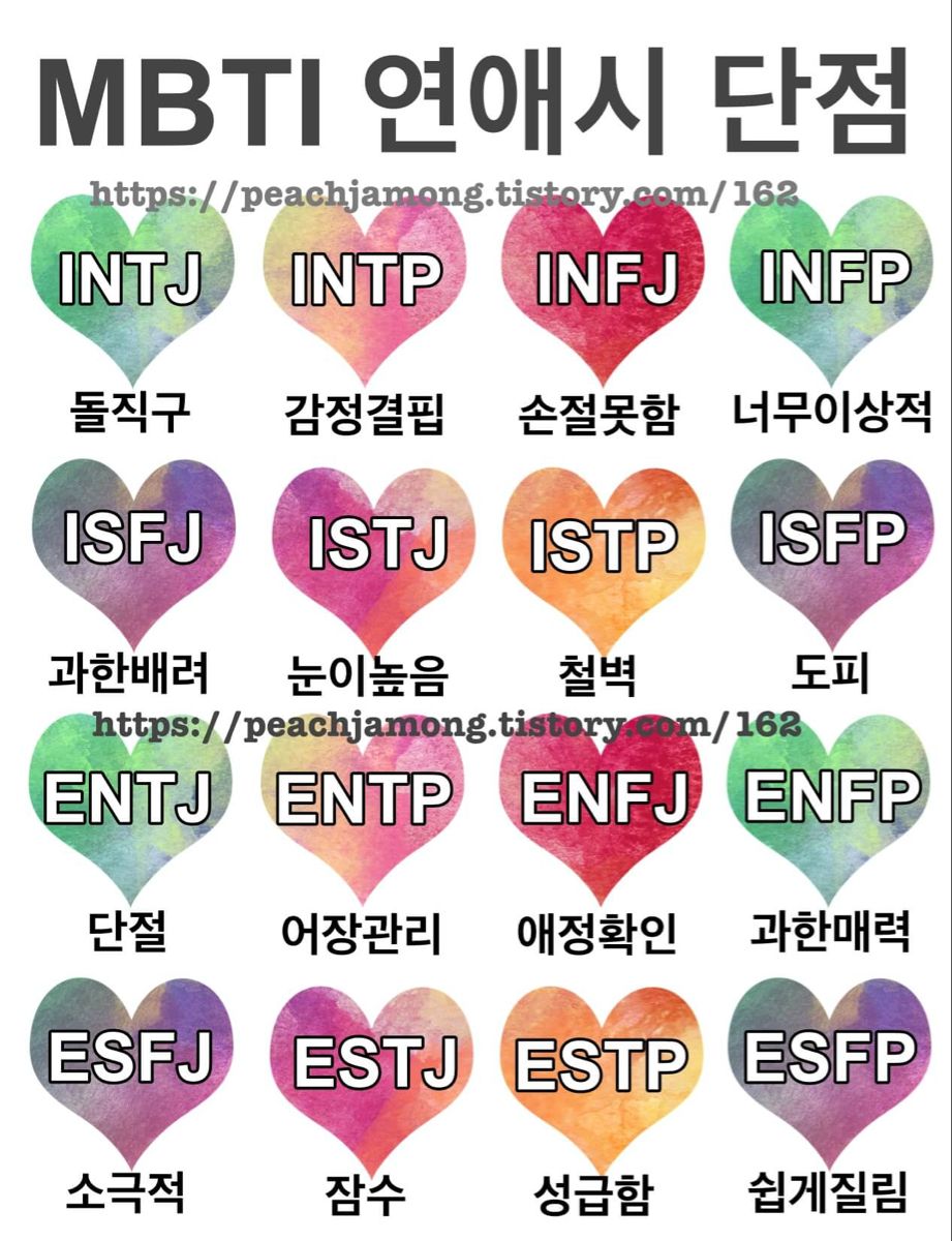MBTI 성격 유형검사를 보고나서 또 보면 좋은 것 중하나가 mbti 궁합인데요. 물론 재미로만 보는 것이 좋지만 의외로 또 궁합을 잘 설명해주는 부분이 있어서 꼭 한번 확인해보는 것을 추천드려요.